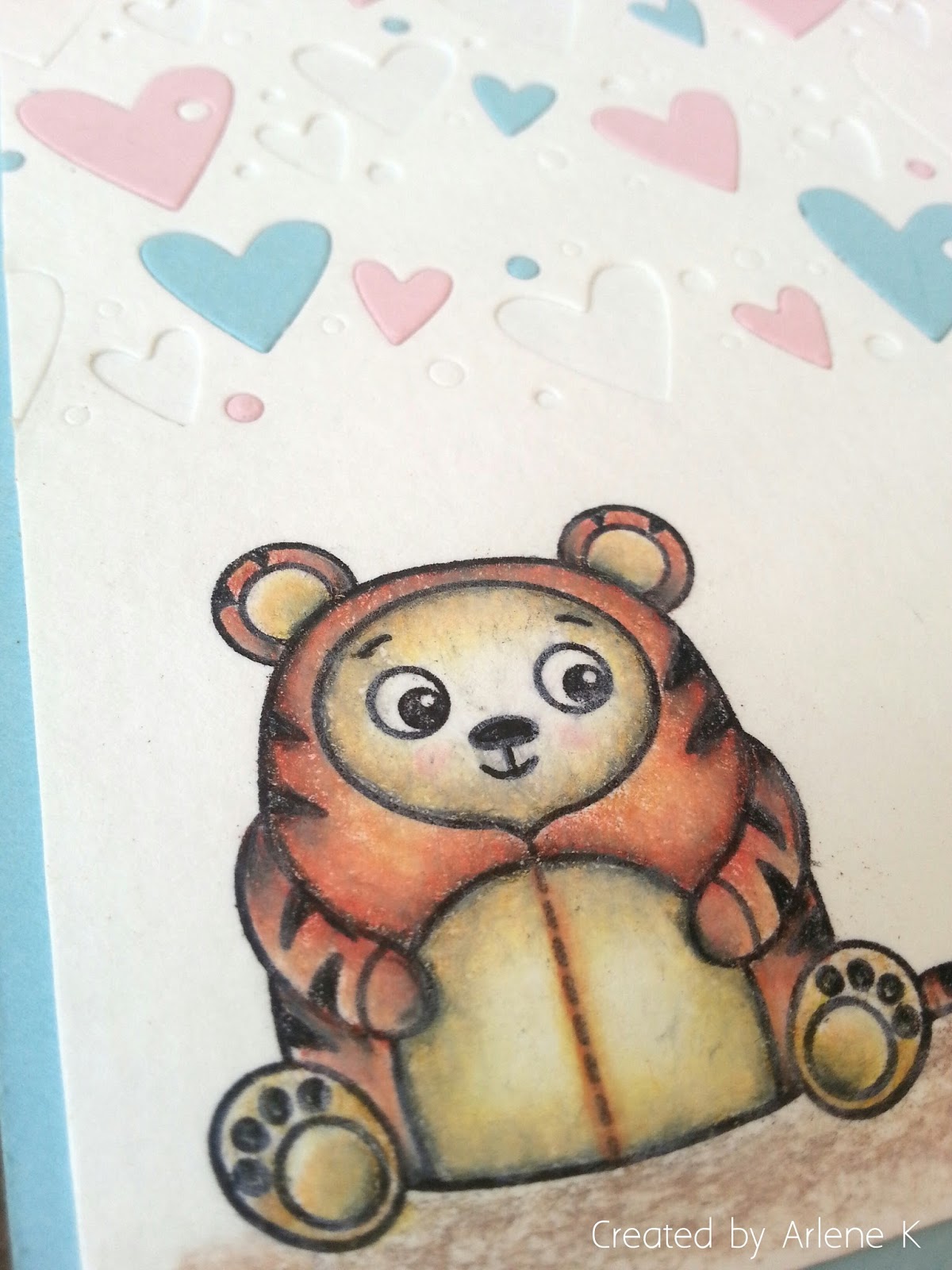 For this card I used the Lawn Fawn stampset "Science of Love". I watercolored the cute birds with "Zig Clean".